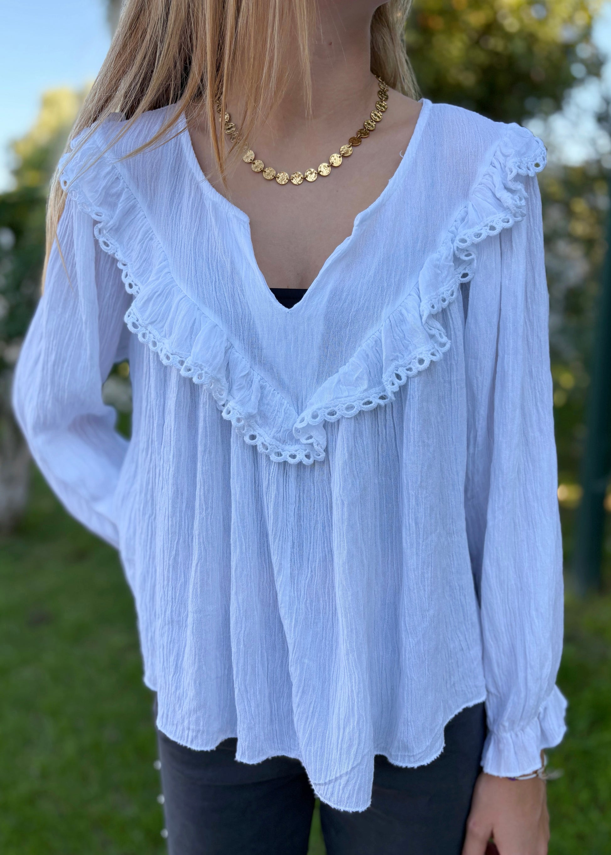 Blusa com Decote em V e Folho