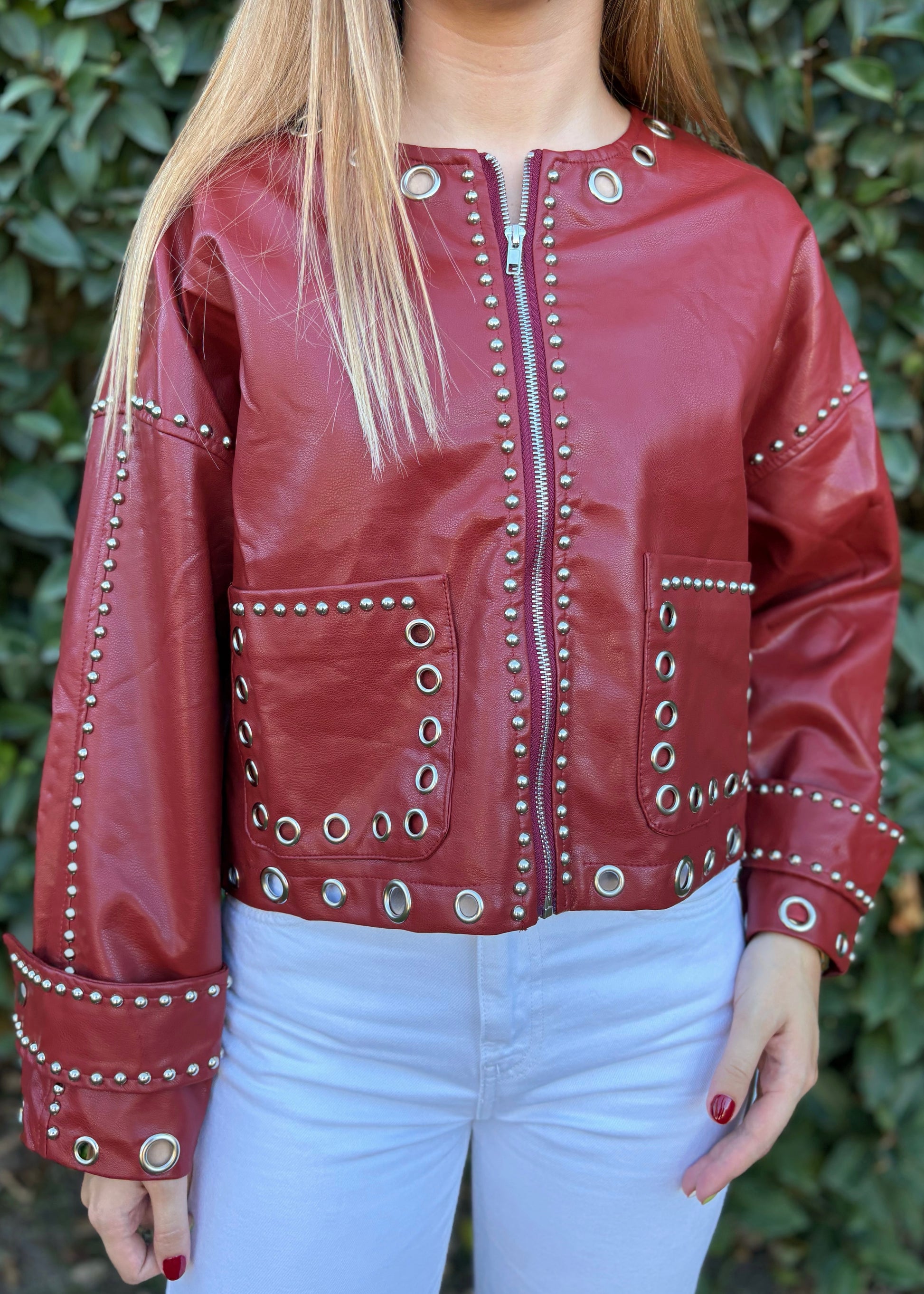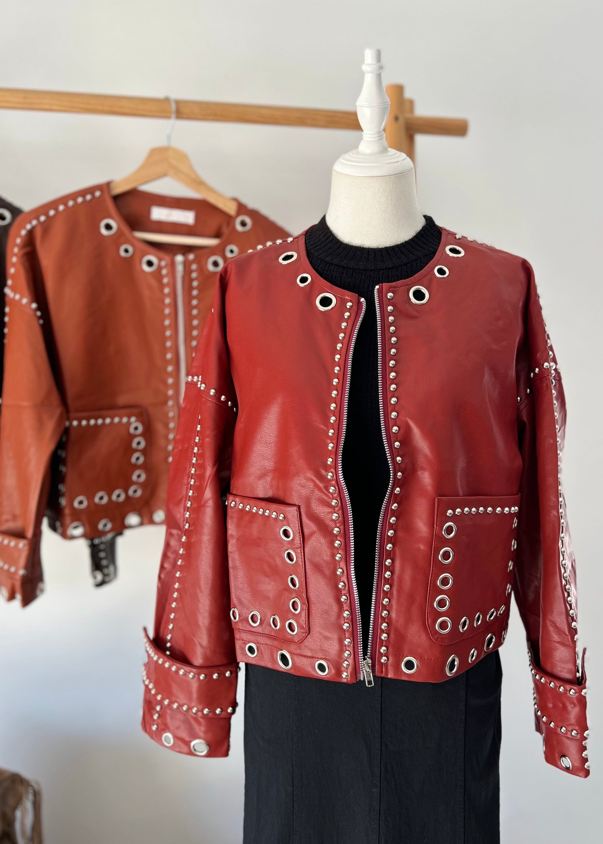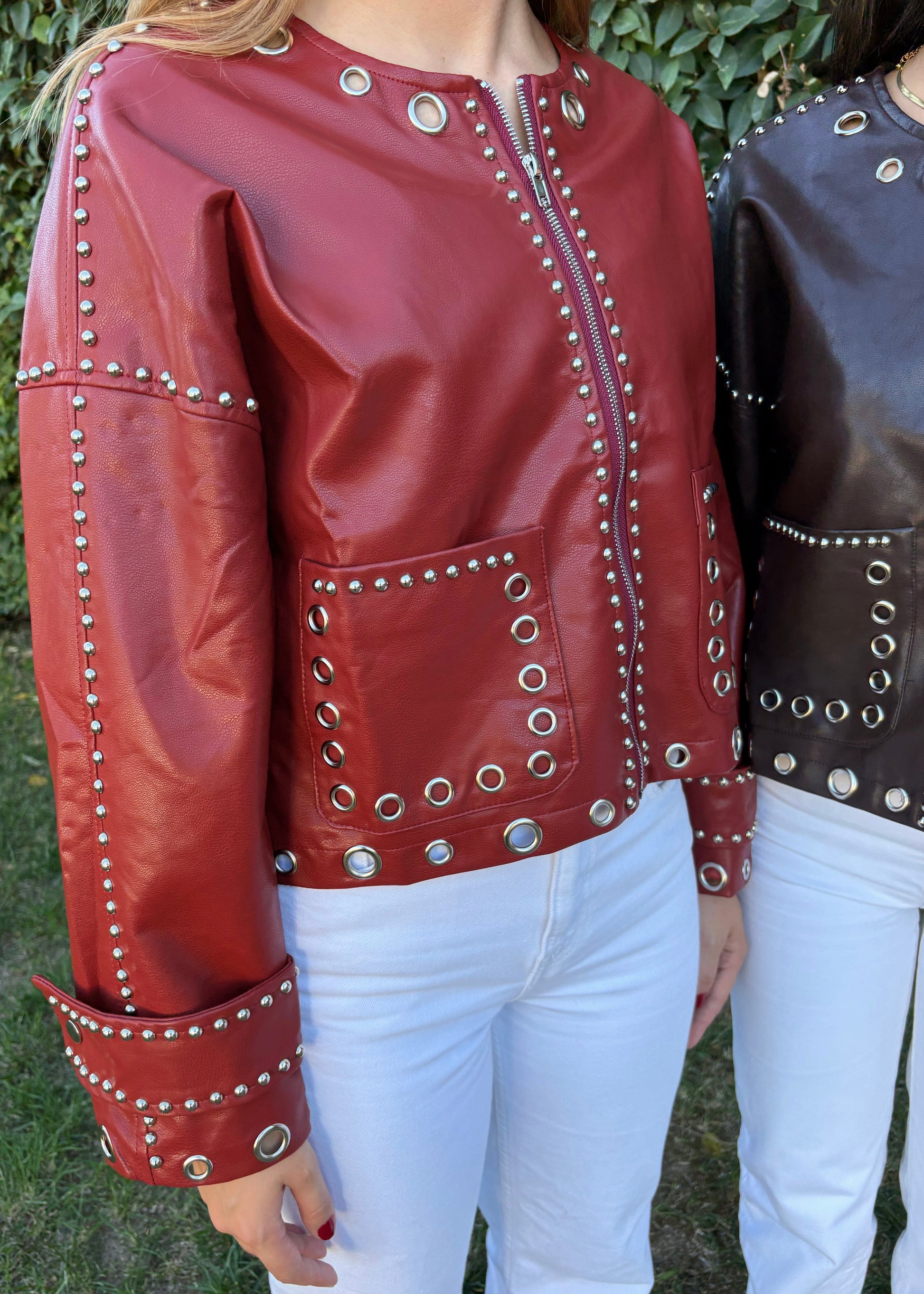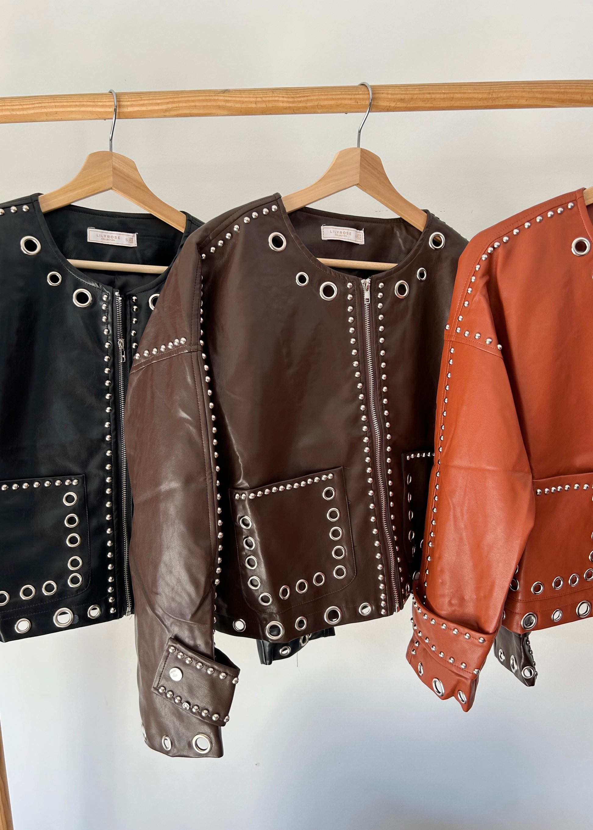 Casaco em Efeito Pele com Fecho e Tachas Metálicas