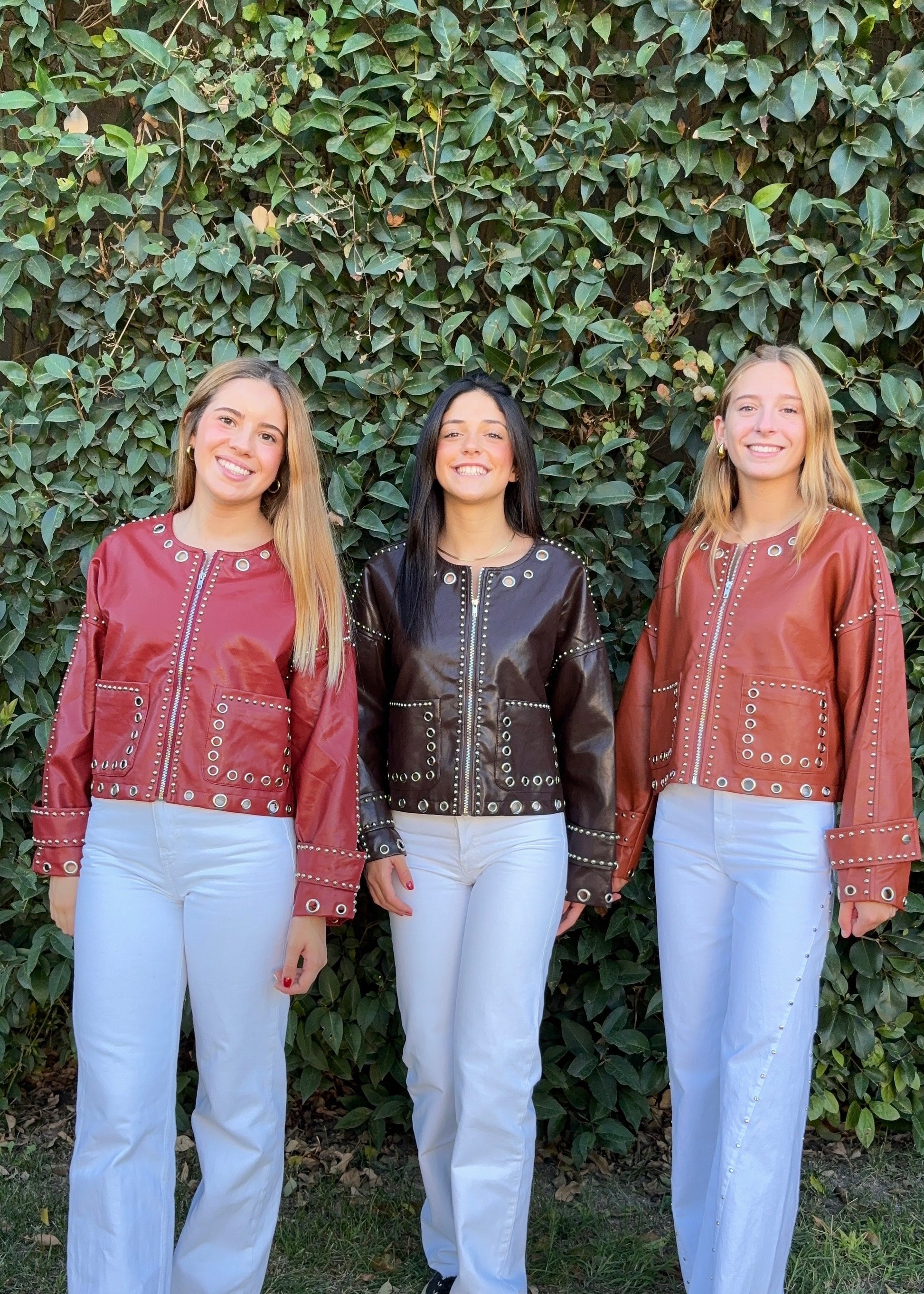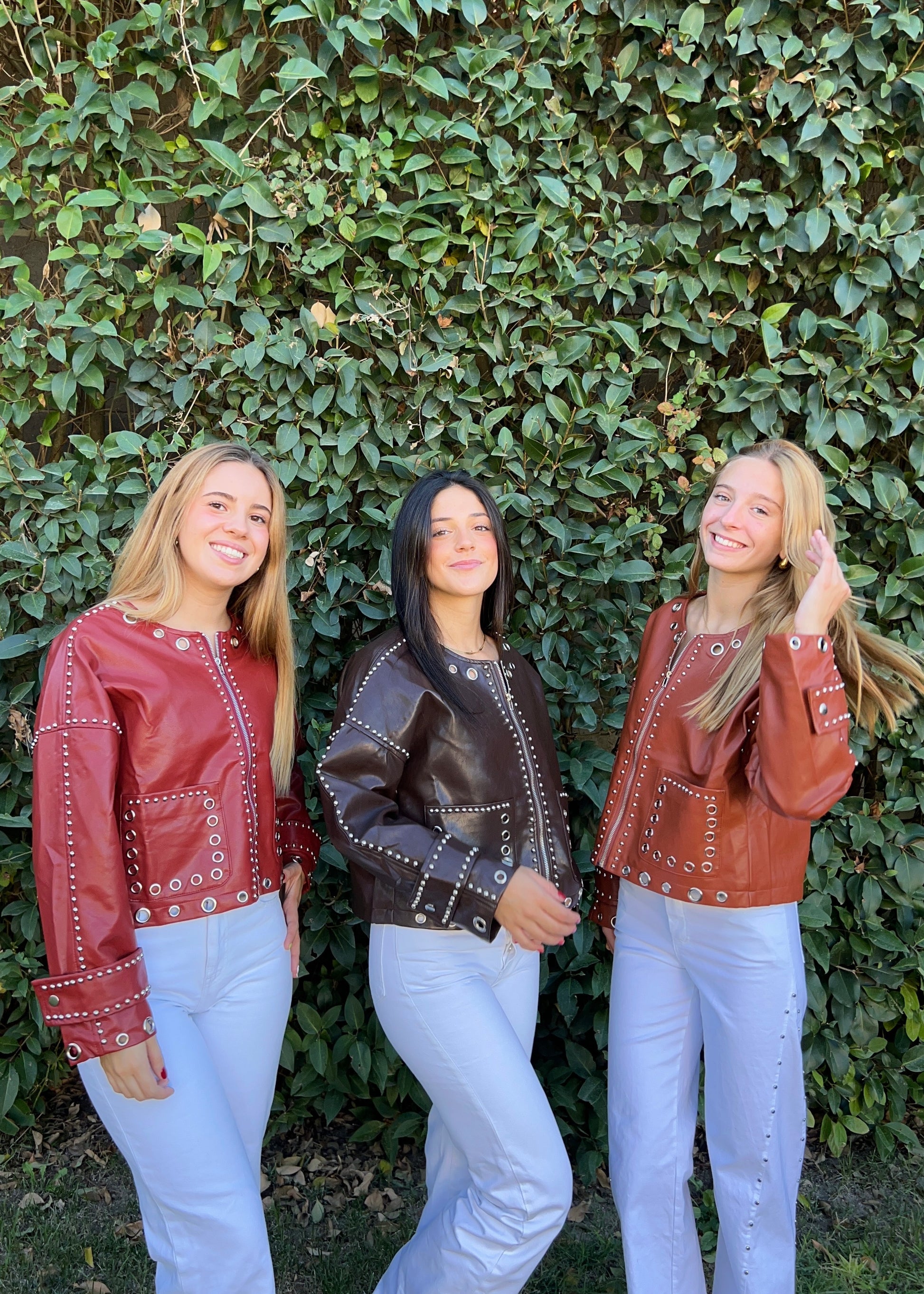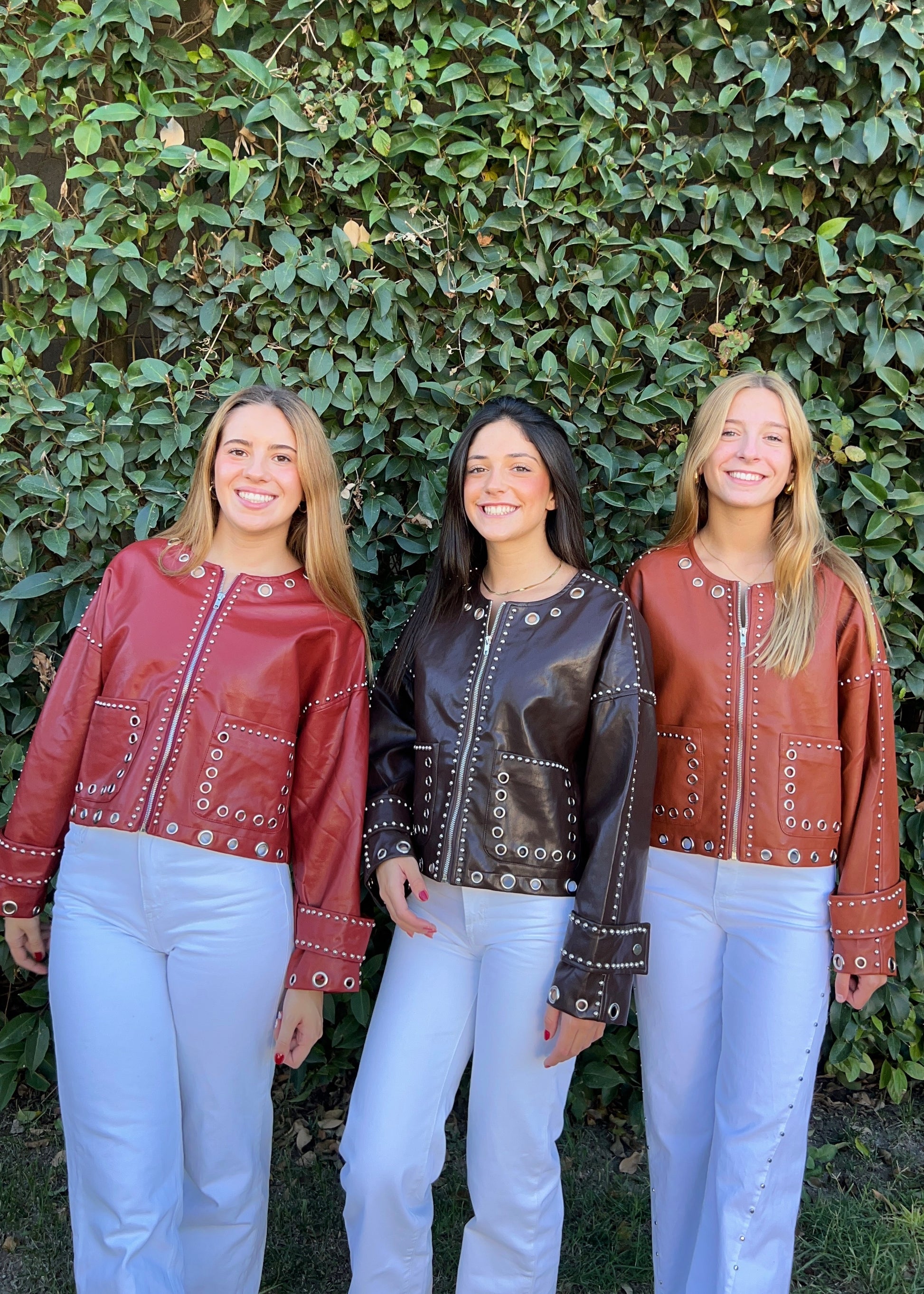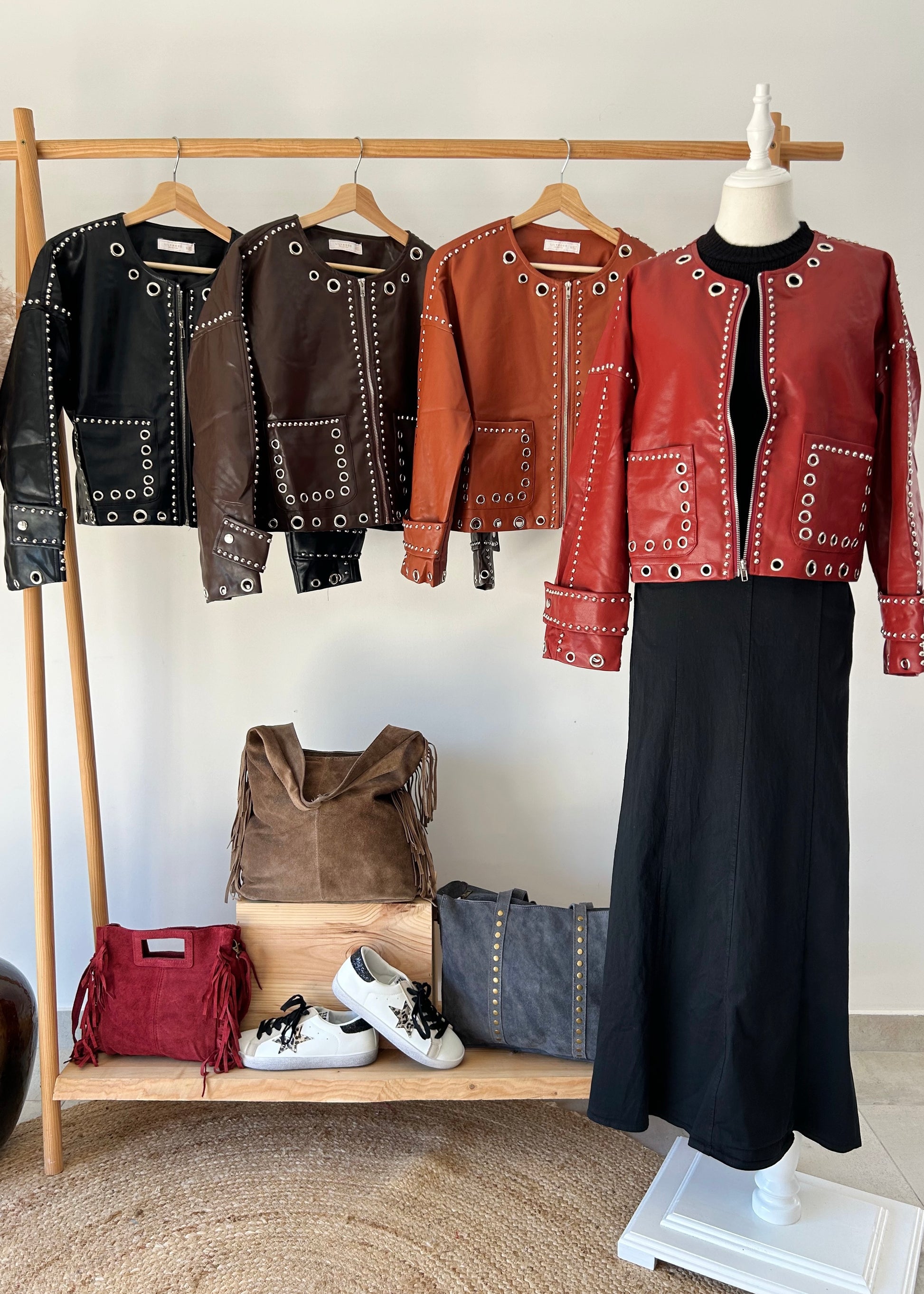 Casaco em Efeito Pele com Fecho e Tachas Metálicas