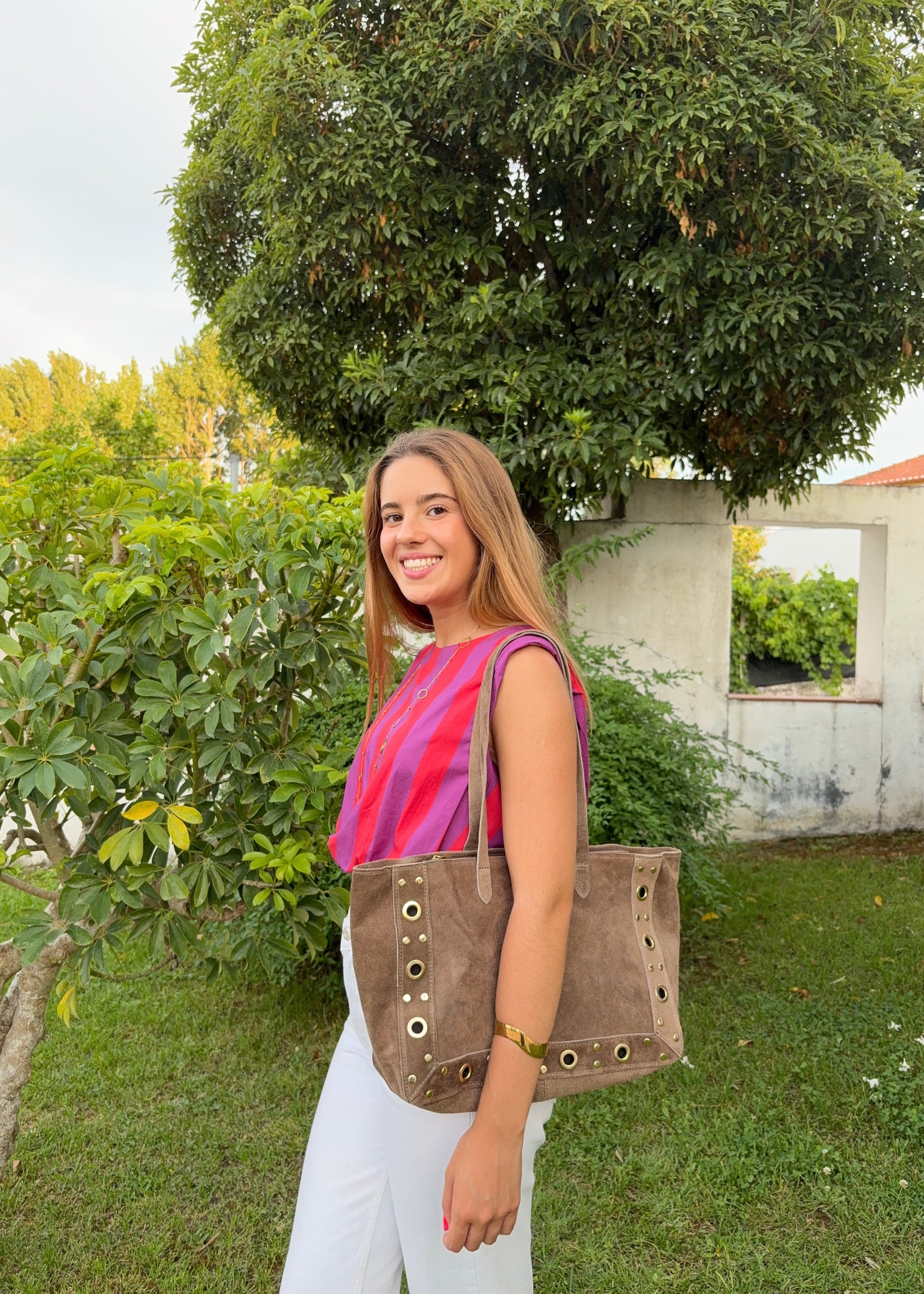 Mala de Ombro em Pele Toupeira com Ilhós Metálicos